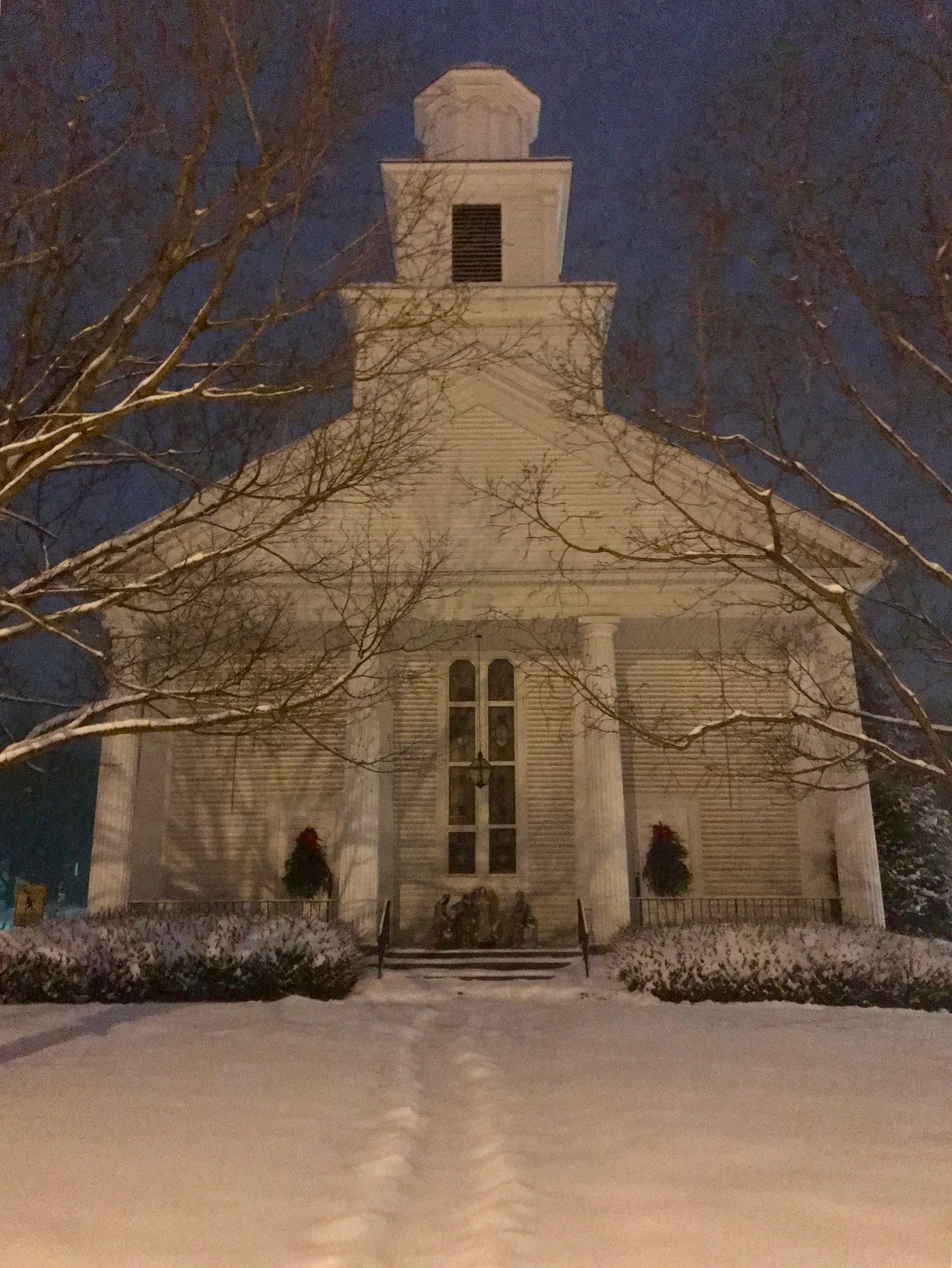 The snow falls on a church holding one soul. Drifting snow causes roads to be treacherous or closed, but the space is full. The baptismal font is empty; yet echoes memories of families blessed. The carpet where chancel meets nave shows evidence of drips of communion juice. Tears shed by coffins never seem to stain. The stilled piano rings with neither spirituals nor hymns. The organ holds its breath. This place is quiet; yet it is not empty. Memories fill this place from altar to narthex.
