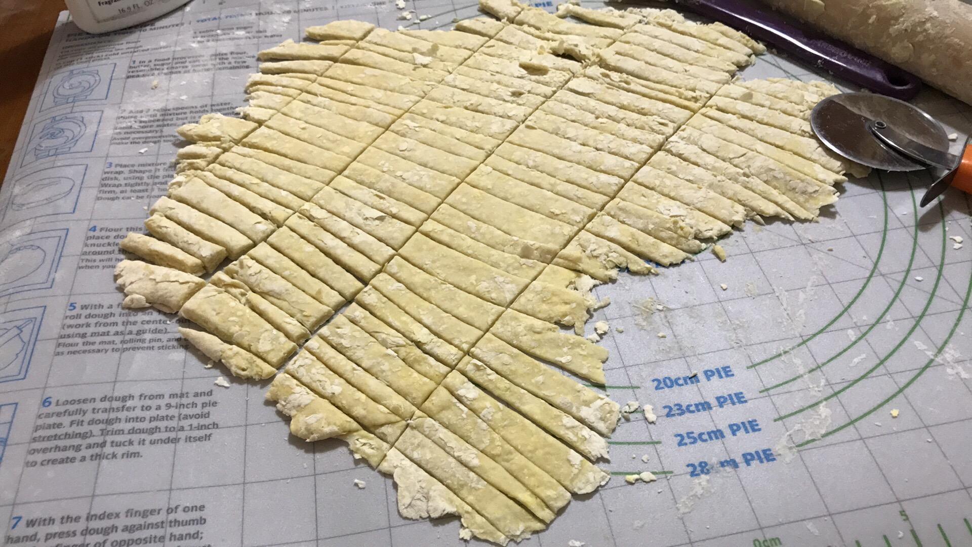 So, I set about the task of making kluski noodles for soup. I asked for recommendations, received a wonderful recipe from my mother-in-law which her mother used to cook, and set to work. I measured, I sifted, I mixed, I realized I made a mistake, I corrected, mixed some more, and rolled them out before attacking with a pizza cutter. Here’s what they looked like when all rolled and cut.