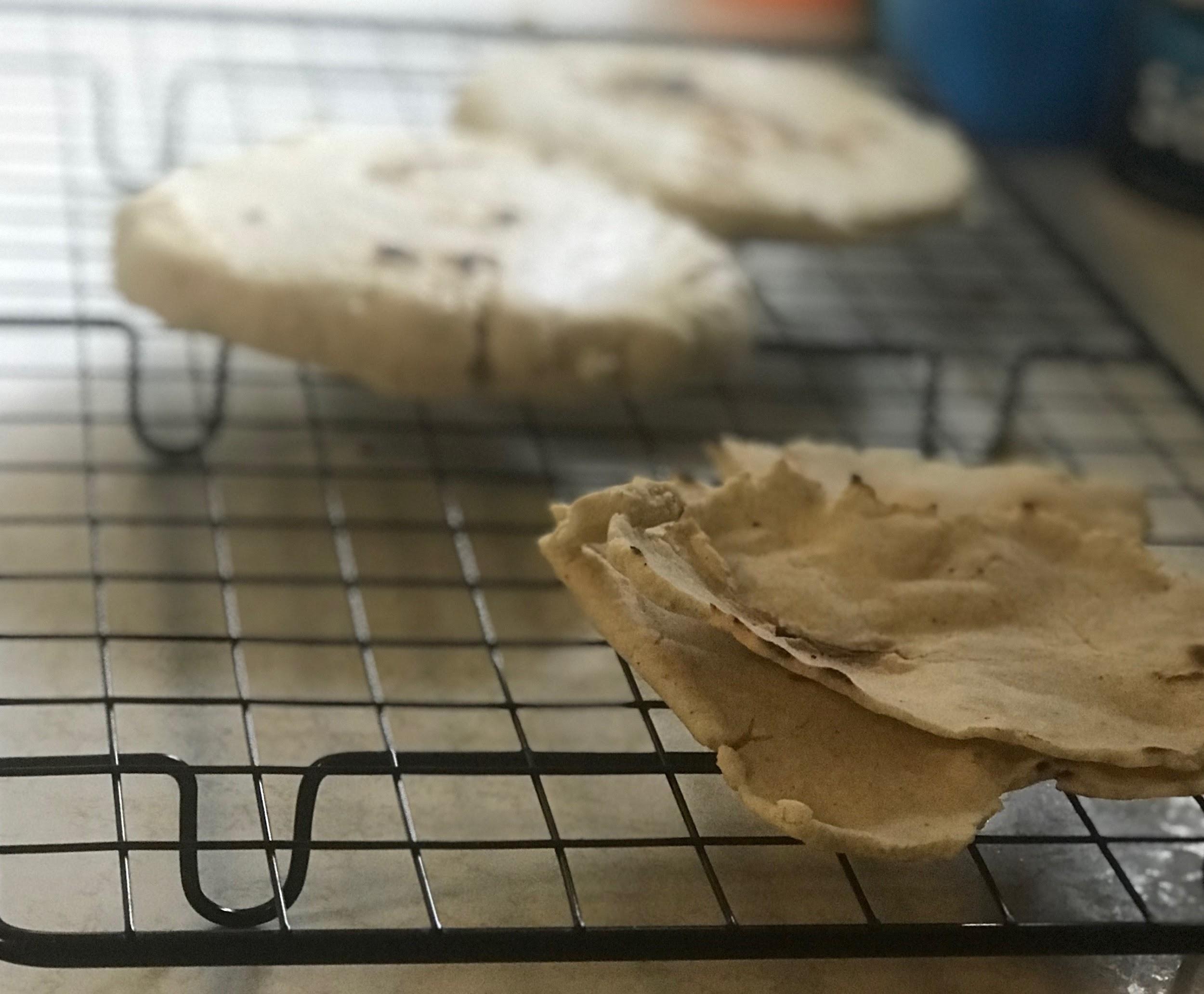 My first attempt at gluten-free communion bread rolled to different thicknesses…