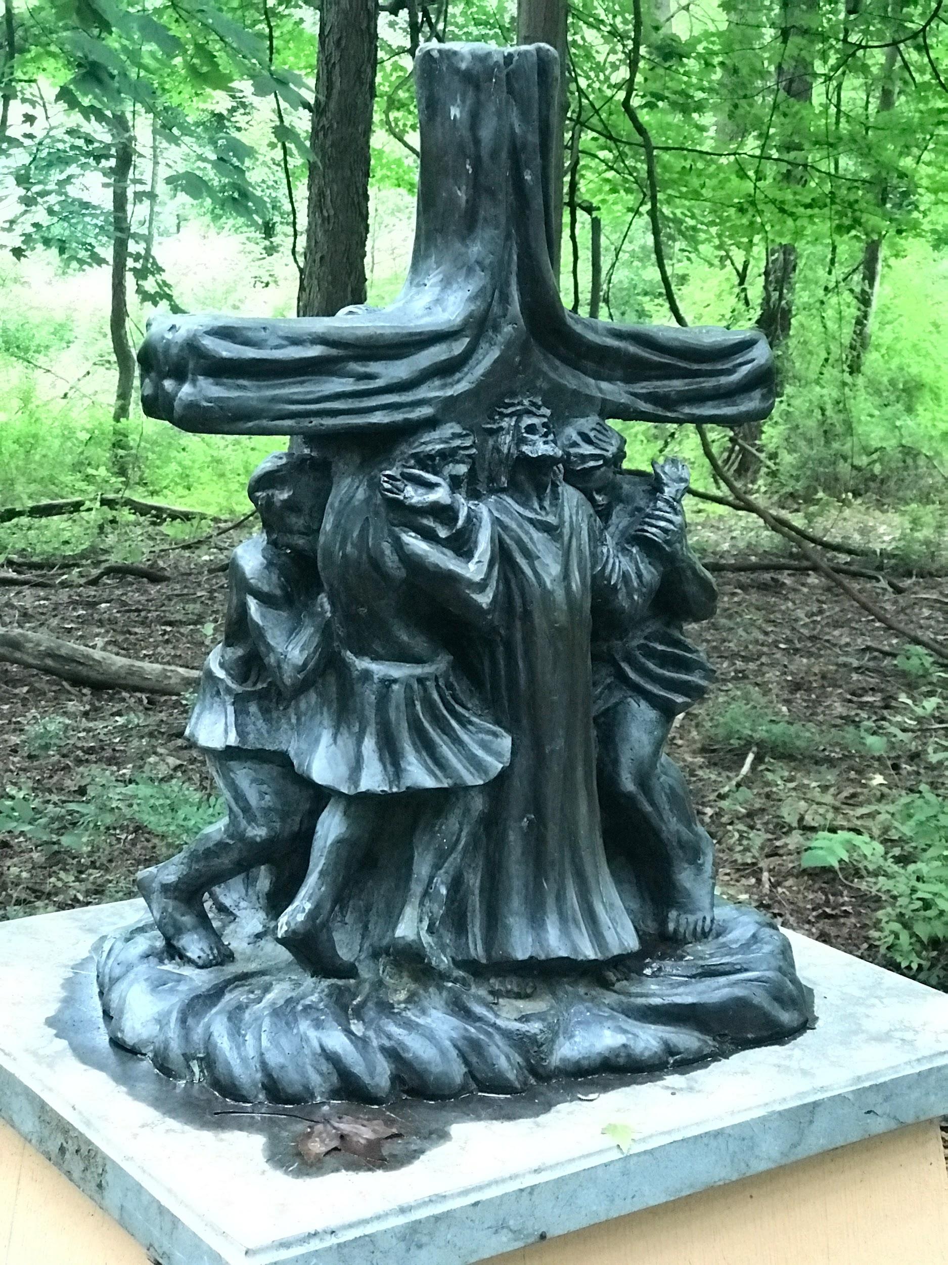 The pictures were taken on the walking stations of the cross outside the Family Life Center at the Malvern Retreat House in Malvern, Pennsylvania. The artist was Timothy Schmaltz, although my understanding is that Mr. Schmaltz did not have his name listed on the monuments. His work was to honor God and not his own talents (which are considerable).